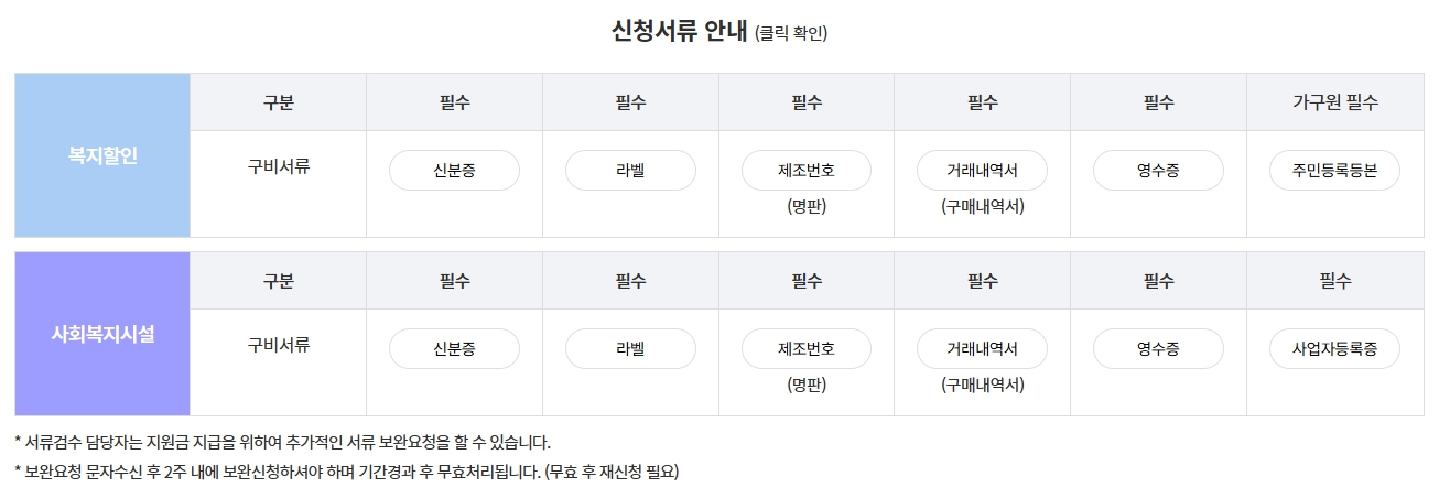 ※ 지원금 신청전에 미리 구비서류를 준비해 놓으시면 빠른 신청이 가능합니다.